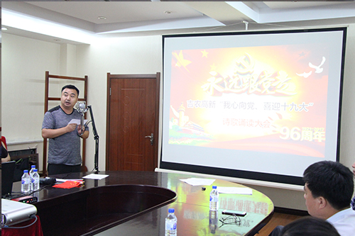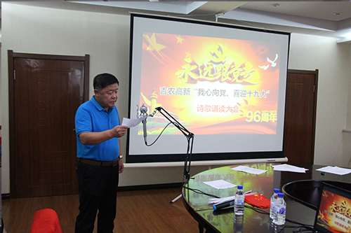 為慶祝建黨96周年,迎接中國(guó)共產(chǎn)黨的第十九次代表大會(huì)勝利召開(kāi),培養(yǎng)干部、職工愛(ài)黨、敬業(yè)、精誠(chéng)團(tuán)結(jié)和務(wù)實(shí)創(chuàng)新精神,在吉農(nóng)高新公司黨委和玉米所黨支部的高度重視與大力支持下,由吉農(nóng)高新工會(huì)和玉米所分工會(huì)聯(lián)合組織,于2017年7月20日下午,以“我心永向黨,喜迎十九大”為主題的職工朗誦會(huì)活動(dòng),在公主嶺院區(qū)主樓大會(huì)議室如期舉行。公司黨委副書(shū)記張秀文、玉米所黨支部書(shū)記黃威及公司高管、各分工會(huì)負(fù)責(zé)人代表,共有15個(gè)單位,近60 名同志出席本次活動(dòng)。
